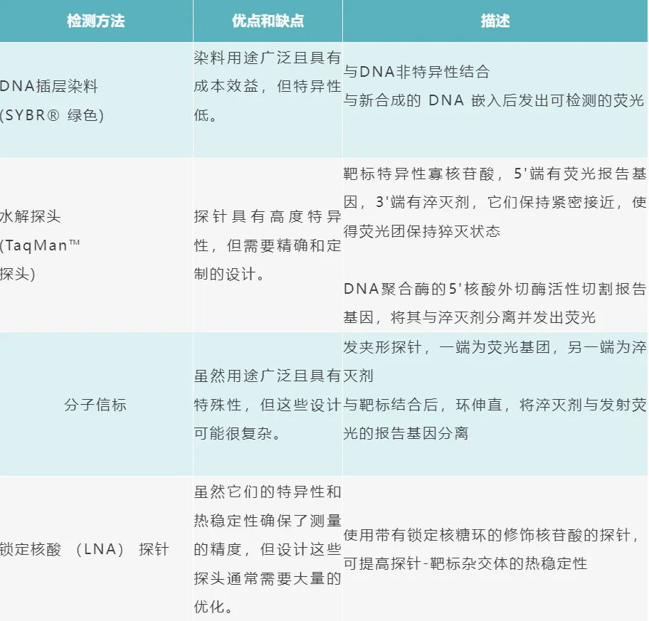4. 環(huán)境監(jiān)測:qPCR能夠高效檢測水體、土壤及空氣中微生物群落的變化,評估環(huán)境質(zhì)量,監(jiān)測污染源的生態(tài)影響,為環(huán)境保護和治理提供依據(jù)。 5. 臨床診斷:qPCR已成為多種疾病診斷、預(yù)后評估及治療效果監(jiān)測的重要手段。通過檢測患者體內(nèi)特定基因或病原體的表達水平,醫(yī)生能夠制定更加精準(zhǔn)的治療方案。 03、qPCR 的工作原理 qPCR反應(yīng)的核心開始于一個混合體系,該體系包含了DNA聚合酶、脫氧核苷酸三磷酸酯(dNTPs,作為DNA合成的原料)、特定設(shè)計的引物(用于識別并啟動DNA鏈的延伸)、熒光染料或報告探針(用于實時監(jiān)測DNA擴增過程),以及待檢測的模板DNA。 04、qPCR 的關(guān)鍵步驟 變性階段:在高溫條件下(常規(guī)設(shè)定為94°C至98°C之間),雙鏈DNA解開成單鏈DNA。 退火階段:在溫度稍低的環(huán)境中(大約50°C至70°C之間),使設(shè)計的引物與模板DNA中的目標(biāo)區(qū)域相結(jié)合,形成引物-模板DNA復(fù)合物。 延伸階段:在DNA聚合酶的催化作用下,溫度調(diào)至酶活性的范圍(通常在68°C至72°C之間),酶沿著引物結(jié)合的起點,以模板DNA為模板,逐個添加核苷酸,產(chǎn)生兩條互補的 DNA 鏈,形成雙鏈DNA。 定量完成階段:在每一輪DNA補充時,通過熒光計測量并記錄這些熒光信號,以做定量分析。 05、qPCR 檢測方法 常見的qPCR檢測方法包括DNA插層染料、水解探針、分子信標(biāo)和LNA探針。 06、qPCR的引物設(shè)計注意事項 引物的設(shè)計長度推薦在15至30個堿基對之間,這樣有助于70至200個堿基對的目標(biāo)序列進行高效互補。 為確保PCR反應(yīng)的順利進行,所選用的正向和反向引物應(yīng)具有相近的熔解溫度(Tm),理想范圍設(shè)定在60°C至65°C之間。 引物的3'端應(yīng)充足GC,可以提升引物與模板DNA結(jié)合的效率和提高熔解溫度。引物的GC含量應(yīng)控制在40%至60%之間,以達到最佳的擴增梯度、穩(wěn)定性和擴增效率。 退火溫度通常建議比引物的Tm值低約5°C,這樣做是為了減少非極化的可能性。 07、qPCR常見問題及解決方法 問題1.qPCR 擴增效率低 問題原因: 試劑與反應(yīng)體系因素:如試劑降解、過期或保存不當(dāng)導(dǎo)致的活性降低。或者加液量不足或成分比例不當(dāng)而導(dǎo)致效率低。 引物與標(biāo)記設(shè)計問題:引物和熒光標(biāo)記(或探針)的設(shè)計存在缺陷。包括引物與模板DNA的結(jié)合力不夠強、引物間形成二聚體、產(chǎn)物長度過長以及未能充分優(yōu)化反應(yīng)條件。 解決方法: 保證所有qPCR試劑質(zhì)量良好,嚴(yán)格按照說明書儲存和使用。確保加液量準(zhǔn)確無誤,以減少操作誤差。 利用文獻資源或?qū)I(yè)設(shè)計軟件重新設(shè)計引物和標(biāo)記。以確保產(chǎn)物長度控制在80到150堿基對之間,同時,根據(jù)引物的特性調(diào)整和優(yōu)化PCR反應(yīng)條件。