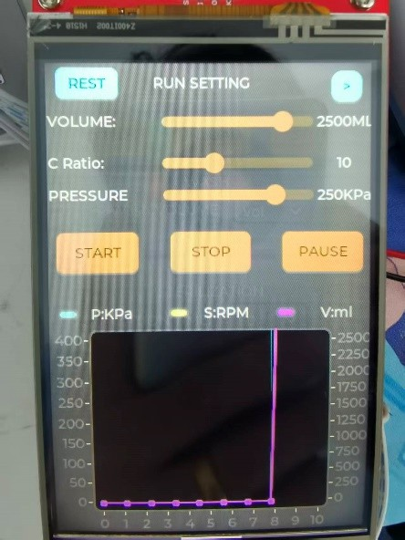 5.1 、點擊屏幕右上角的藍色按鍵,切換屏幕至過“RUN SETTING”液面,直接點擊“START”按鍵,進行壓力測試。